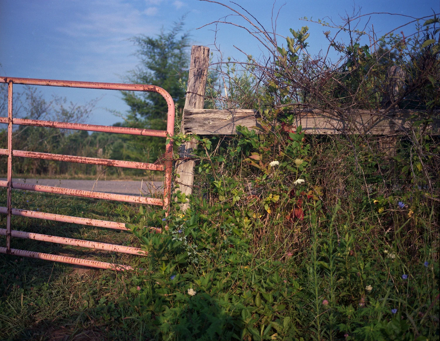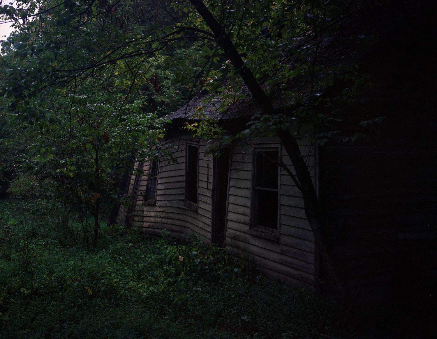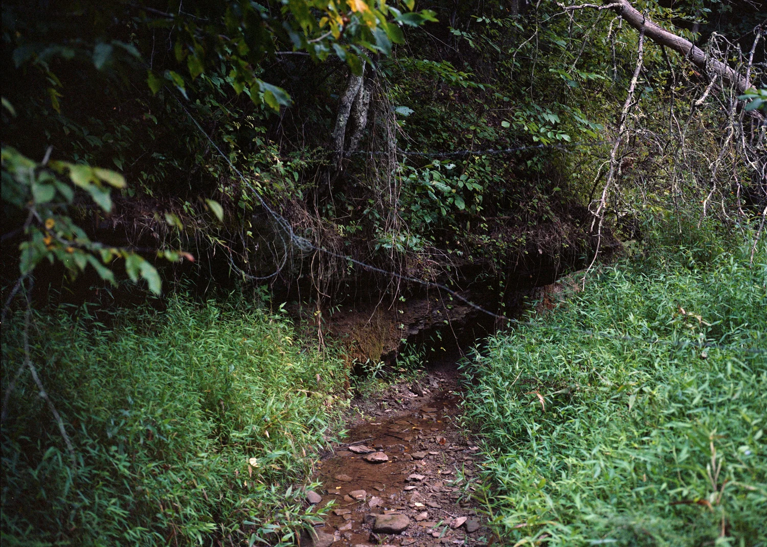 Farrell took me to his childhood home on Dog Fork, a little creek in a steep, narrow valley. We hiked for hours, under humming electric lines and through prickling brambles. We arrived to find a decomposing structure; the wallpaper his mother had meticulously pasted up, the electrical wires his uncle had dutifully installed -- the evidence of their hands remained. The garden roses grew wild, mingling with the briars and poison ivy. As we walked away from his home, we took the country road he and his brother had taken to school every day; it was no more than a hint in the forest, a trick of eye to see.